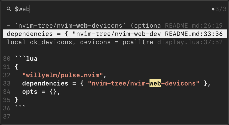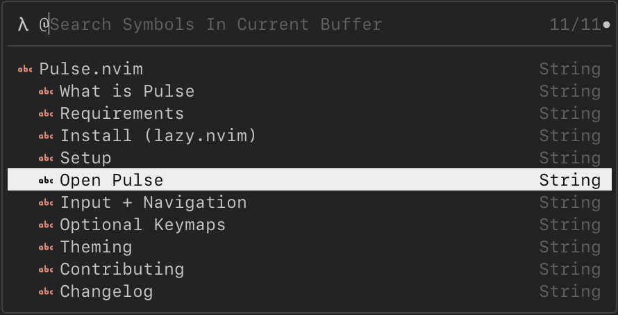 Pulse gives me one consistent command palette for navigation and search in Neovim, with less cognitive overhead and fewer mode-specific keymaps to manage. It is now the default way I jump through files, symbols, and code context.